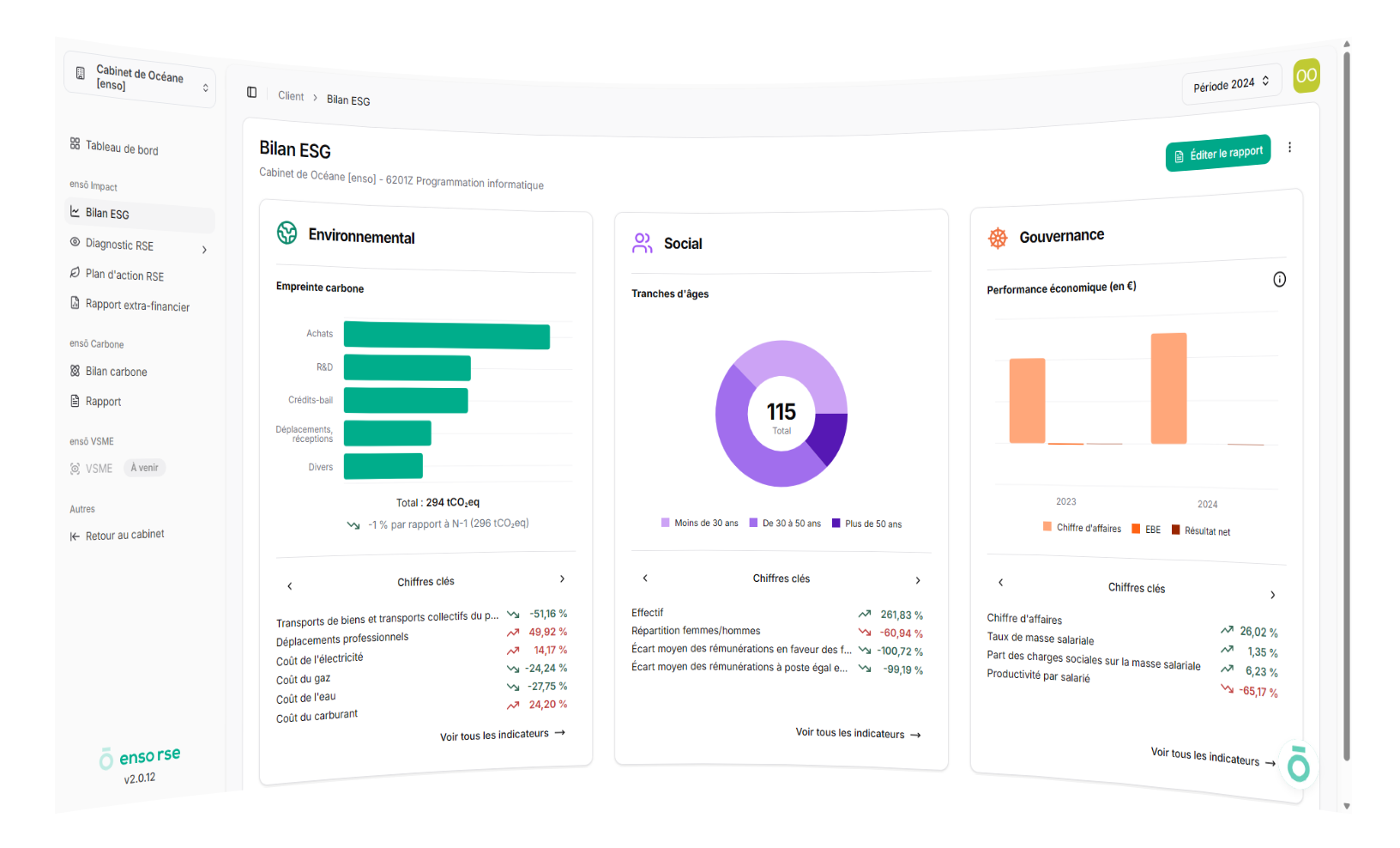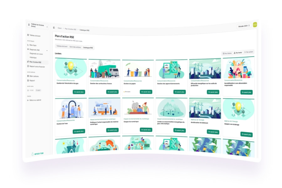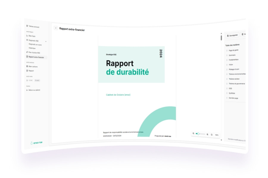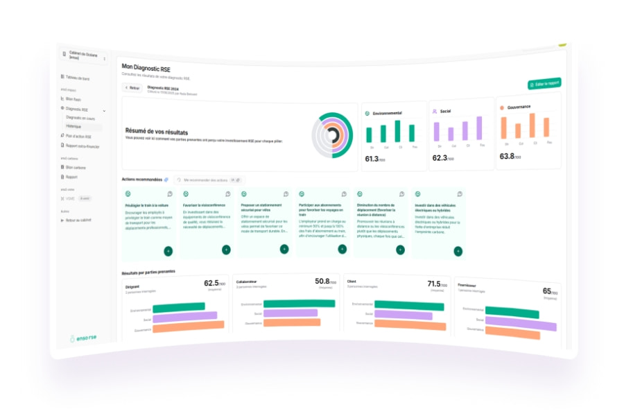 ensō rse est la plateforme dédiée aux experts-comptables qui souhaitent accompagner efficacement les TPE/PME dans leur démarche RSE. Grâce à des outils clés en main, votre cabinet peut proposer des solutions concrètes pour transformer la RSE en levier de différenciation et de croissance pour vos clients !