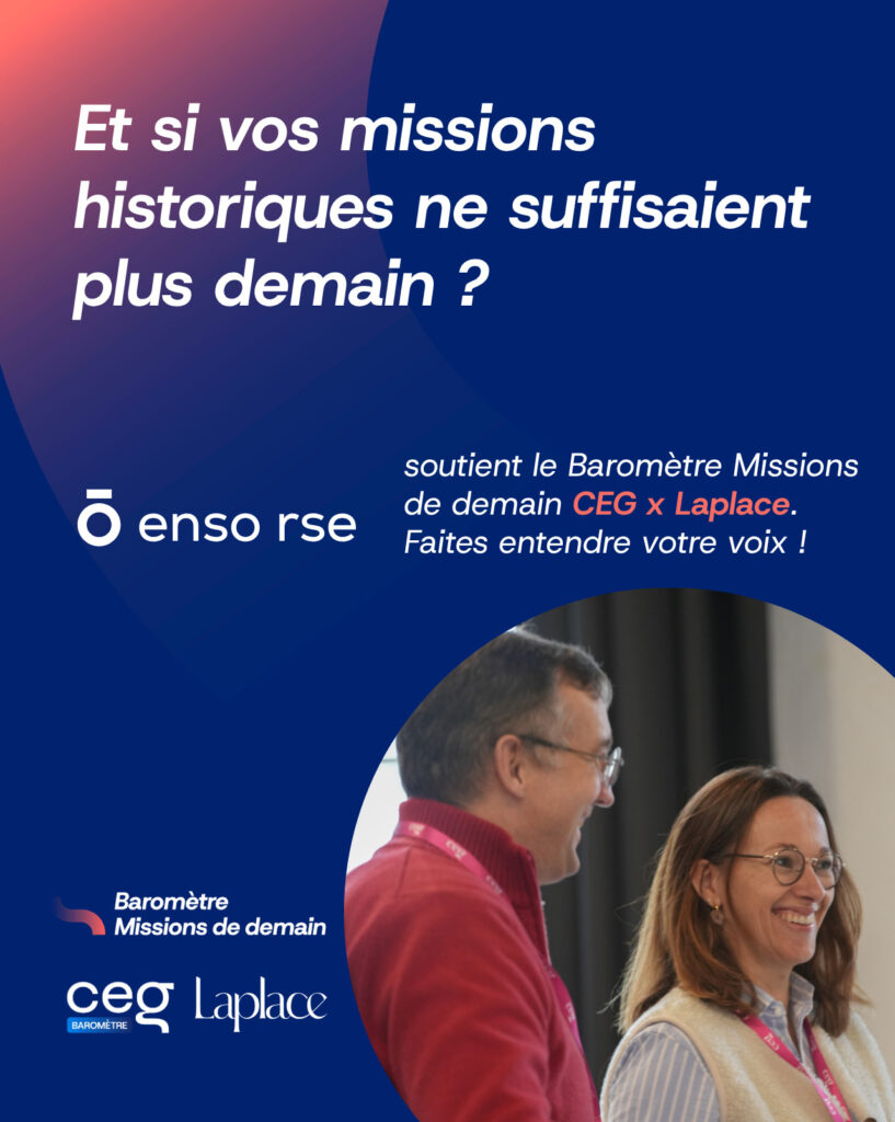 C’est dans cet esprit que ensō rse soutient l’enquête nationale lancée par le CEG et Laplace. Un baromètre essentiel pour comprendre où se situent les opportunités de croissance… et replacer la RSE au cœur des missions à forte valeur ajoutée.